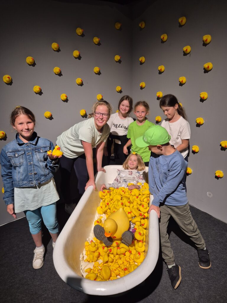 - Jeden deň z nášho tábora venujeme náučnému výletu. Počas neho deťom zabezpečíme cestu (vlaky a autobusy), obed a aktivity. Ako aktivity vyberáme miesta vhodné pre tému nášho tábora, pričom dbáme na to aby bola jedna aktivita náučného charakteru (múzeum, hvezdáreň a pod.) a jedna bola zábavná hlavne pre deti (trampolínové centrum, lasergame a pod.).