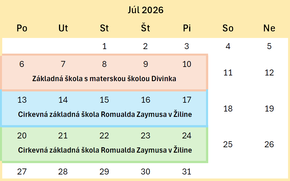 Druhý a tretí turnus tábora sa bude odohrávať v priestoroch cirkevnej základnej školy Romualda Zaymusa v Žiline.